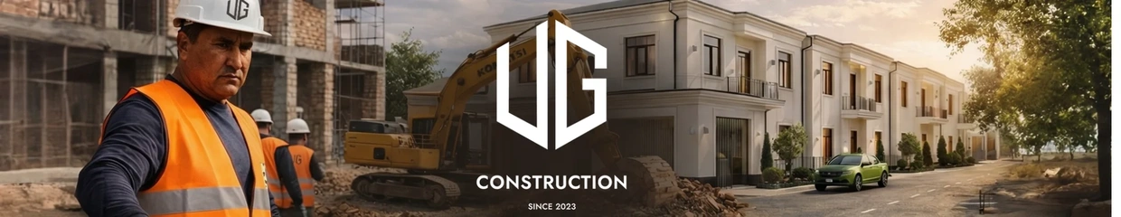 UG Construction — застройщик коттеджных городков бизнес-класса в Ташкенте. Работаем с 2023 года, уже 21 семья живёт в наших домах.