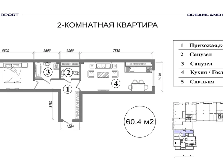 Квартира 2 комнаты 60 м² Ташкент, Узбекистан