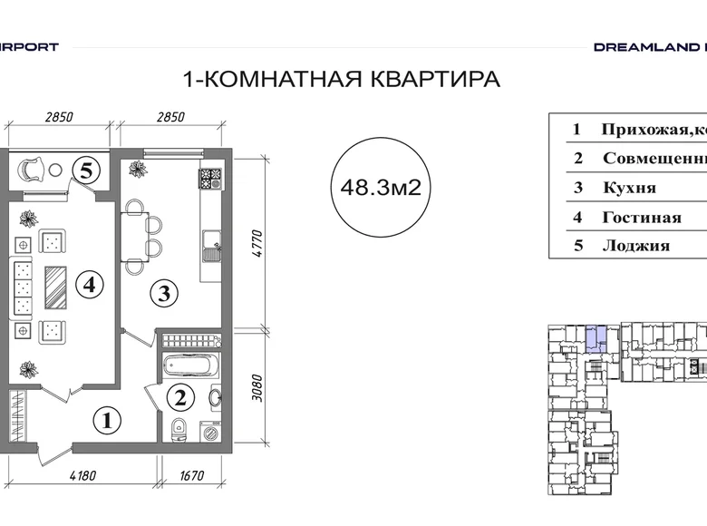 Площадь 48 м²