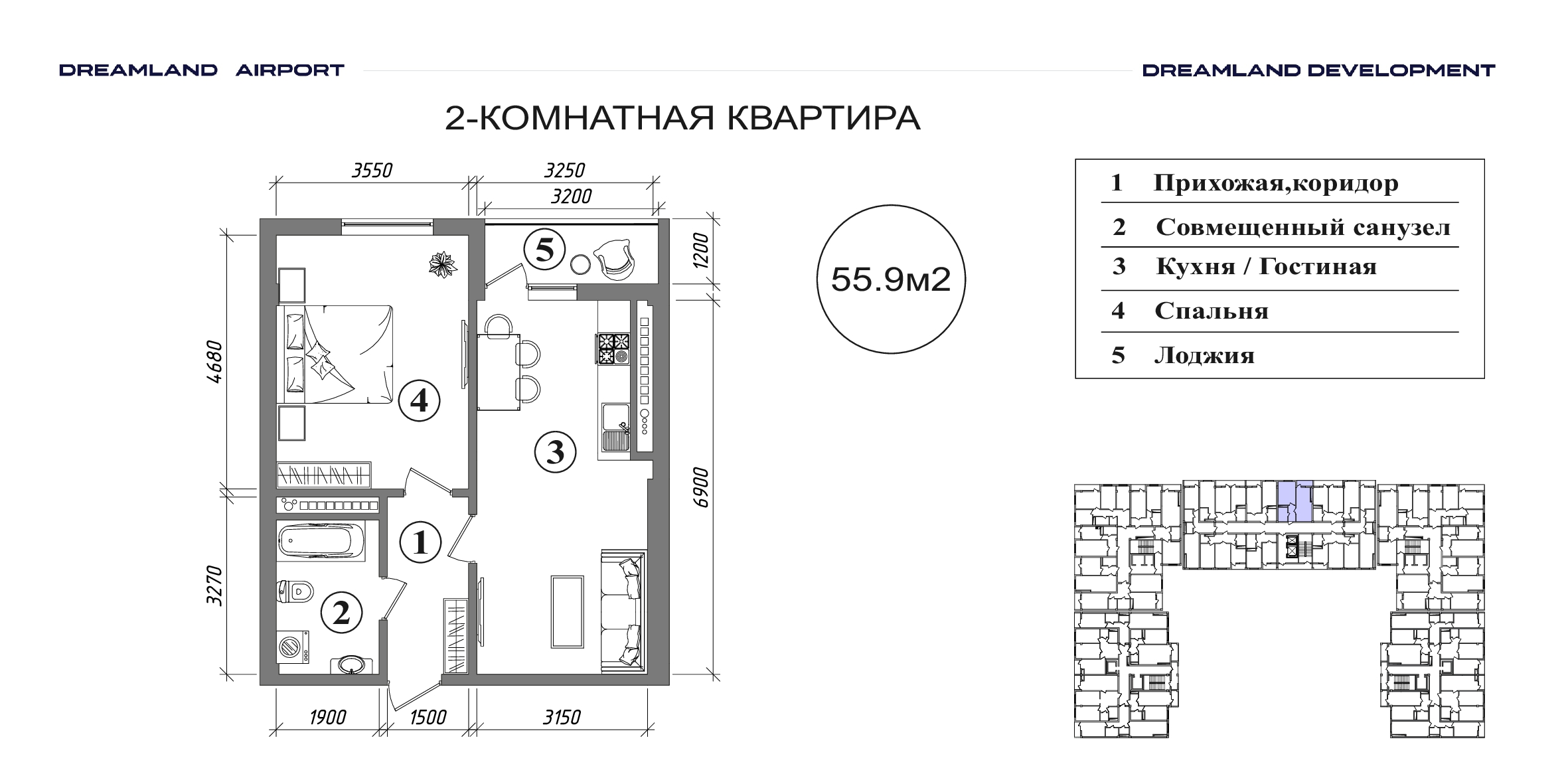 Число комнат 2