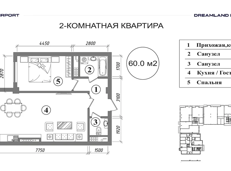 Площадь 60 м²