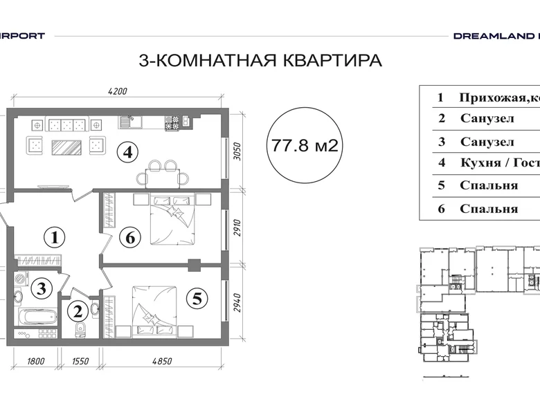 Квартира 3 комнаты