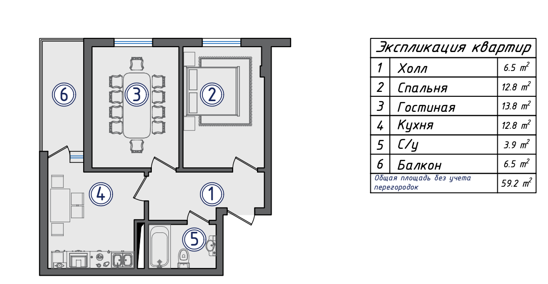 Площадь 59 м²