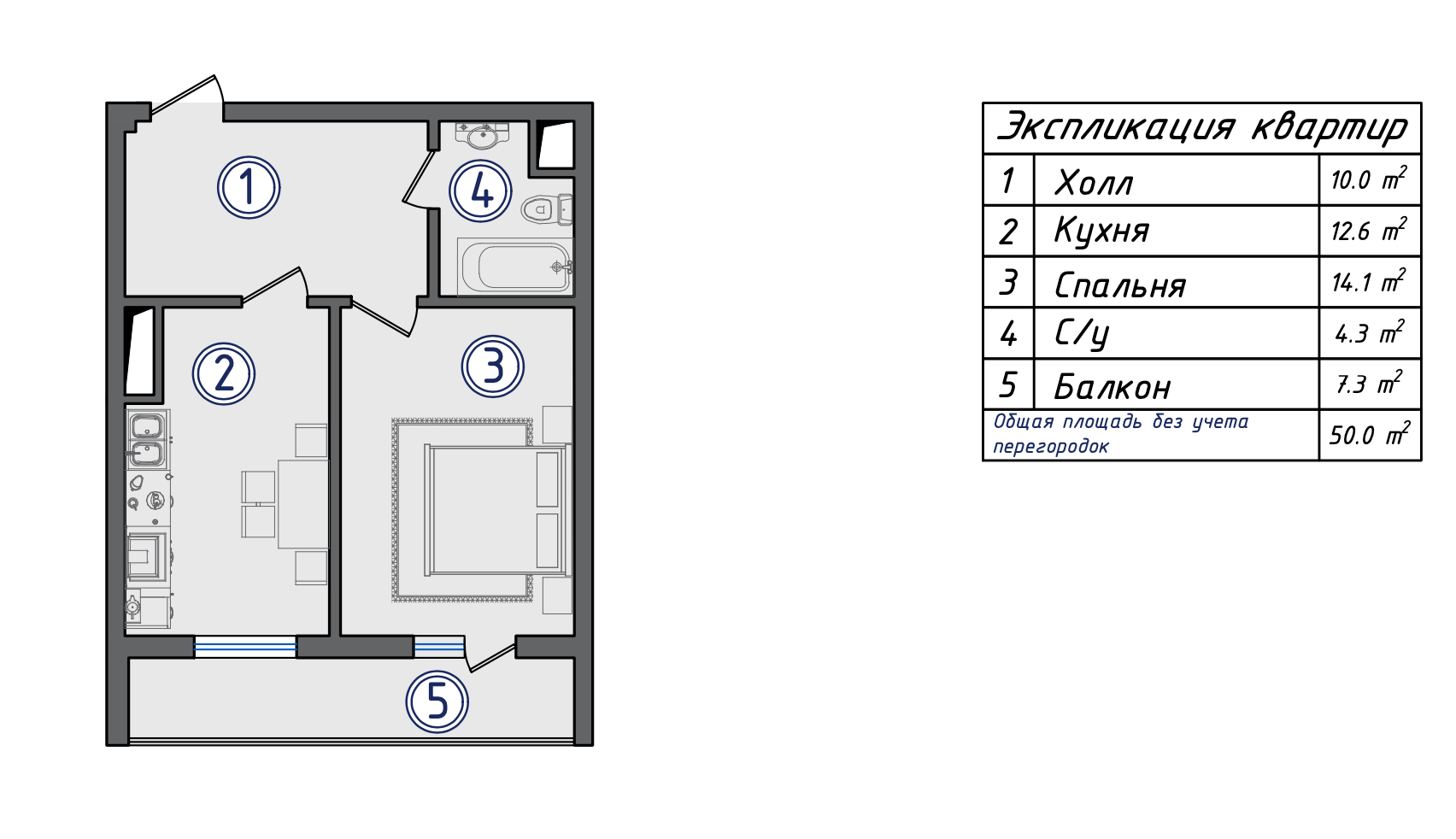 Площадь 50 м²