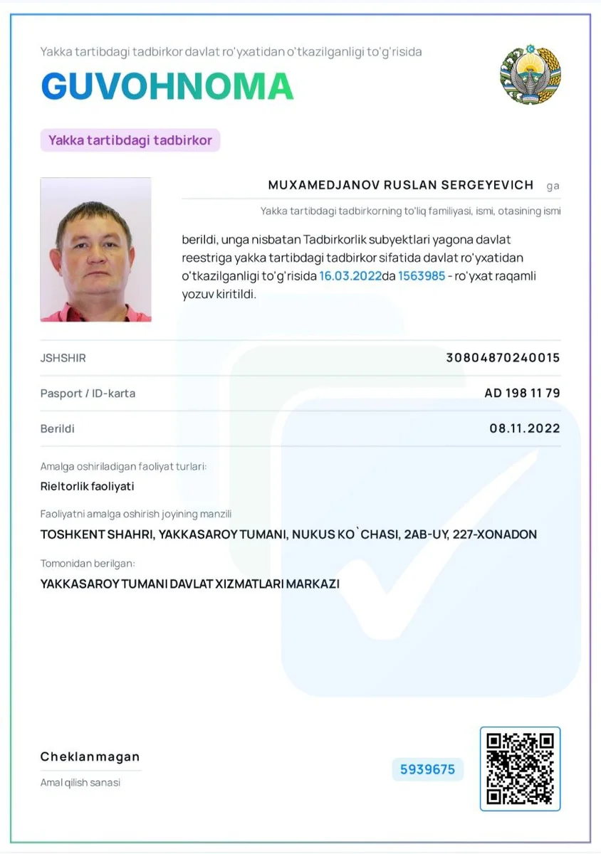 Mutaxassis o'zi haqida ma'lumotni to'ldirmadi