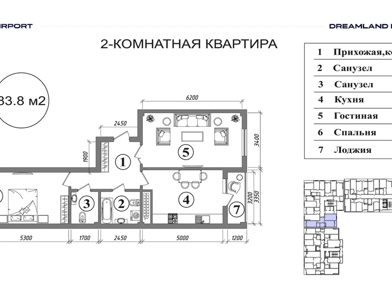 ID: 130611 Район: Сергелийский Адрес: массив Сергели-VIII Кол-во комнат: 5 Этаж: 7 Эт…